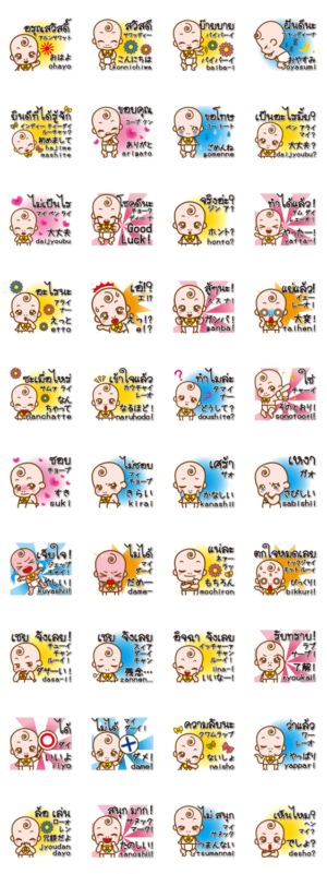 赤ちゃんの日本語とタイ語 スタンプ画像一覧