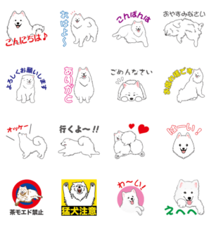 白もふワンコ、サモエドのスタンプです。ジュリぱぱ より発売