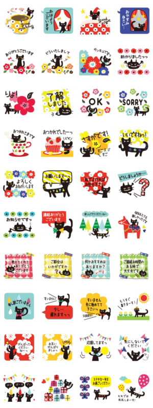 デフォルメされたくろねこの敬語スタンプです。お友達にはもちろん目上の方にも送りやすいスタンプです。