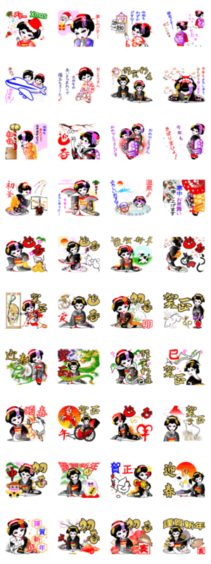 舞奴さん、芸奴さんのスタンプで珍しく使うのが楽しい。奥ゆかしさや古風さはさほど強くはない分使いやすいです。