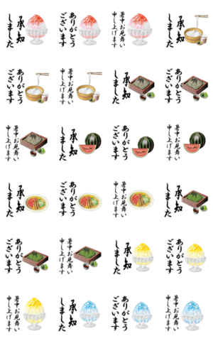 夏に涼しい食べ物で基本の挨拶 スタンプ画像一覧