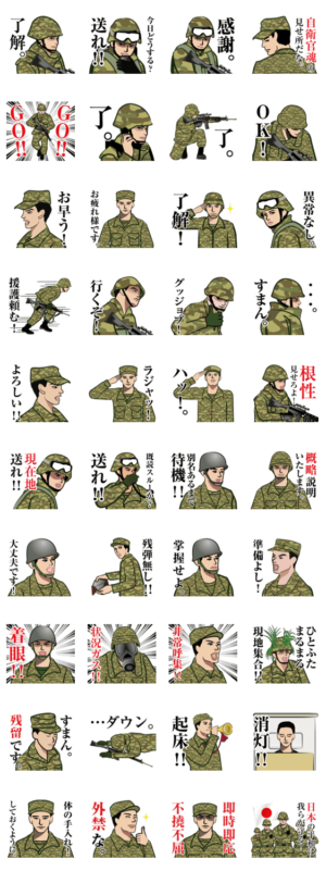 陸上自衛隊のLINEスタンプです。陸自の日常でよく使用される用語を特集しました。
