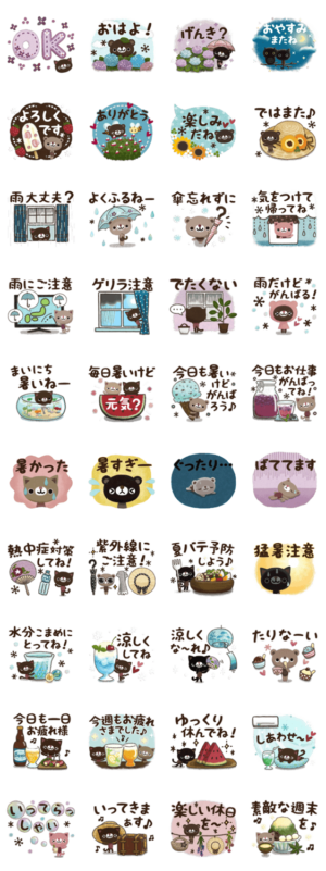 梅雨から夏にかけて使いやすいスタンプを集めました♪雨や暑さで過ごしづらい季節も楽しくやりとりしてくださいね~♪