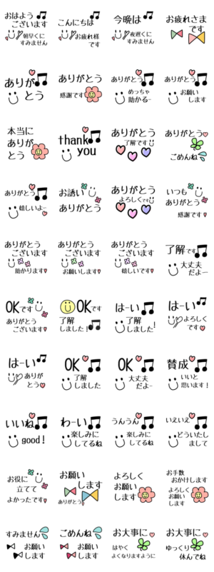 友達/彼氏/ママ/ママ友/毎日使える/使いやすい/日常会話/あいさつ/シンプル/敬語/大人/大人可愛い/ありがとう/顔文字