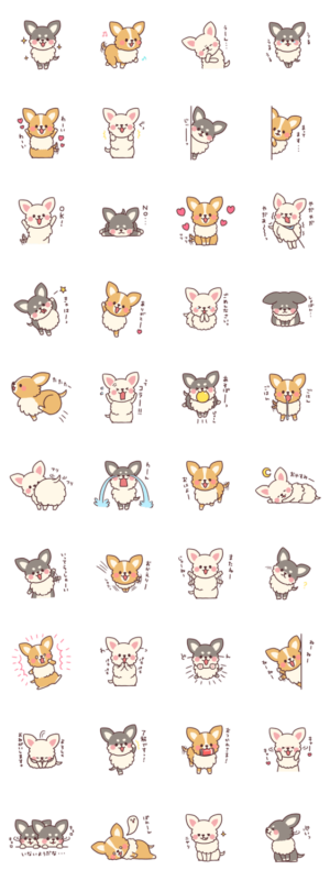 3種類のチワワスタンプです。ふわふわロングコートチワワが動き回って気持ちを伝えてくれます!ブラック系ホワイトクリーム系レッド系どのチワワが好きな人にも☆つじなつみ より発売