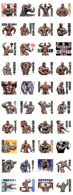ボディビルのポージングなどを使った、日常会話で使える 筋肉好きの為の、筋肉マッチョマッスルスタンプの第6弾。そして敬語バージョンの第2弾です。