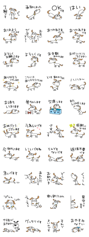 犬のウッピー2(敬語編) スタンプ画像一覧