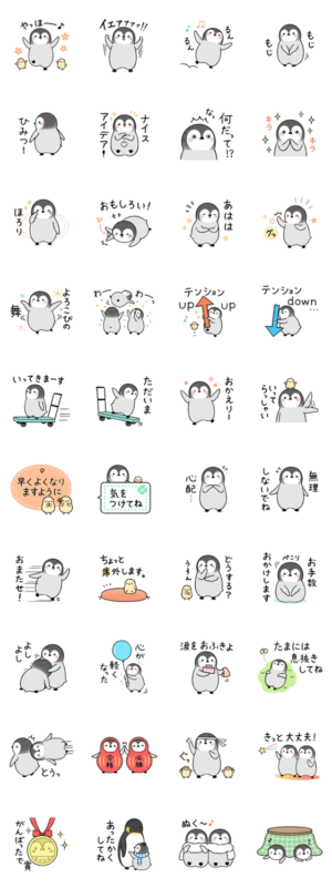 ぺんぎん&ひよこ達がお送りするにぎやかなスタンプ、第4弾です。おがわゆきこ より発売