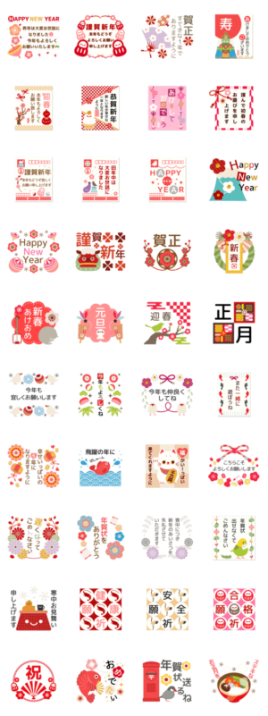 新年を飾るに相応しいスタンプです。素敵なスタンプで新年を明るく迎えましょう。