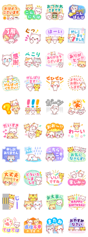にゃーにゃー団のスタンプ第6弾!大きめの文字と毎日使えるフレーズを集めました♪Miho Kurosu より発売