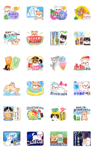 可愛い元気な柴犬スタンプ♪ ハスキーやチワワ、ダックスも登場します♪楽しい夏を♪ (同じ絵柄で、家族友達用も販売中です)作:ラブリーダム |七夕|台風|動く|日常|大人studio LOVEREEDOM より発売