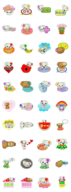 ハワイとフラダンスが大好きなくま達。日常使いやすい言葉や吹き出しもあります。白いくまの名前がロアちゃんです。アイナちゃん より発売