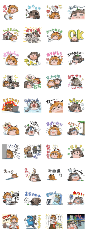 へんないきものチャンネルの公式スタンプその1。ゆっくり体型のきつねさんとたぬきさんがころころしていてかわいい。一部人型体型のものあり。また一部カカポネタもあり。
