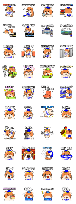 横浜在住ハムスター。サッカー、ライブ、コンサート参戦にもおすすめ。ビールの売り子ちゃんも登場。待ち合わせや、おはよう、おやすみなどの日常会話に使えるスタンプも有チーフ より発売