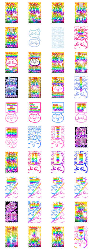 キラキラしている勢いのあるパチンコの様なパワー文字!! BIGスタンプ×激アツレインボーがうるさくてかわいい!一部で大人気のヘタネコペーターとぴえんネコも入っています