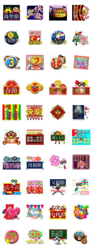 台湾語のイベントセット!旧正月、ハロウィン、バレンタイン、クリスマス、お誕生日、父の日、母の日等セットです。申年でなくても世界中で来年も使えます。Check it out.