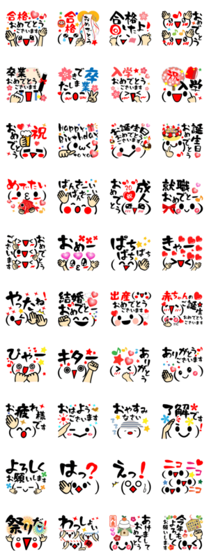 顔文字スタンプお祝いセットです。めでたい感がたっぷりでいいですね♪