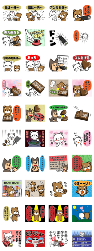 節分とバレンタインに使える、猫と犬とクロネコさんのスタンプです。mongol より発売