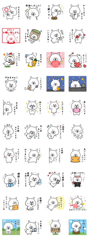 ゆるうさぎの敬語スタンプ第2弾!家族や友達、彼氏彼女、会社の先輩やママ友にも幅広く使えます。日常のトークにゆるうさぎを添えてみてください。