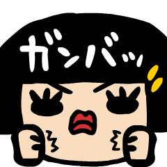 おかっぱ頭の女の子、ヘルメットはちえさんのスタンプ第3弾です。ゆるい関西弁でおもしろ可愛くいきましょう。