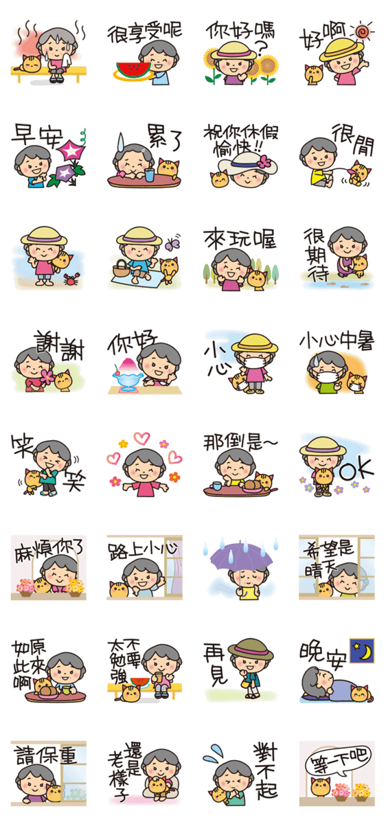 優しくてキュートな「ばぁば」のスタンプ、夏の[中国語(繁体字)]バージョンです。Reiko より発売