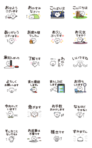 毎日使える基本の敬語と小さくてかわいいシロクマのデカ文字アニメーションスタンプ♪大きな文字とよく使う言葉でとっても便利!