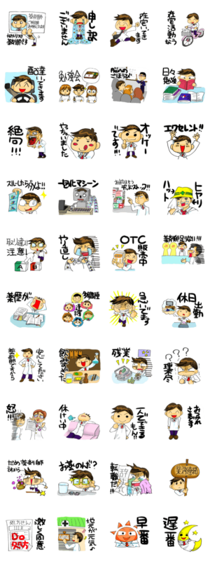 かかりつけ薬剤師の日常をスタンプにしました。仕事からプライベートまで色々使えます。