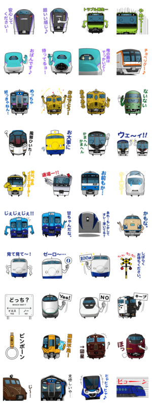 忠実に再現された新幹線や電車のイラストに、日常会話や列車名をモジッた言葉を掛け合わせた鉄道ファン必見のスタンプ!大好評御礼!第4弾の登場です!