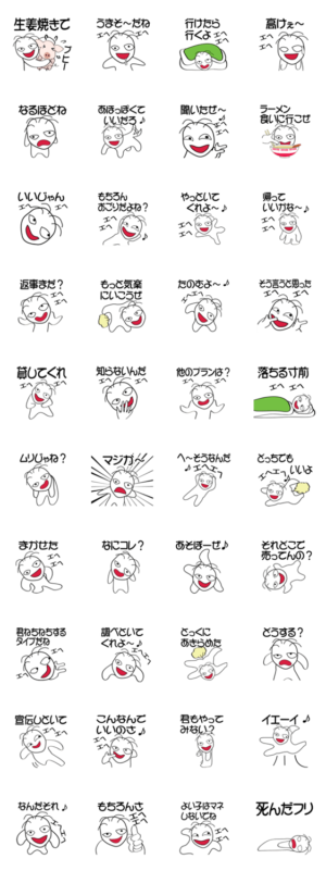 てきとーで、楽天家で、いつもふざけているエヘエヘ君。笑って使えるふざけたスタンプを目指しました。( 注意:親しくない友人には、送りにくいスタンプです。 )