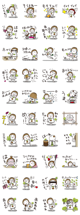 前髪ぱっつん(前髪パッツン)のはな子ちゃんが主婦になりました。まま、お母さんからパパ、家族、ママ友達にも(四つ葉のクローバー)シマ子・トメ子ちゃんのお友達。キキぷり より発売