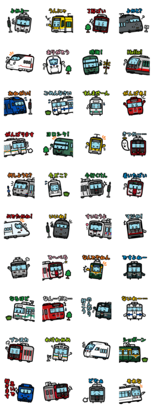 デフォルメした可愛い電車のスタンプです。溝犬堂 より発売