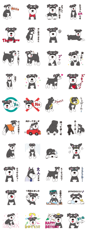 お洒落さんだけど笑える、そんなミニチュアシュナウザーのスタンプです。コサビ より発売