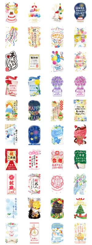 華やかなスタンプでたくさん使いたくなるスタンプです!年中大活躍するスタンプです!