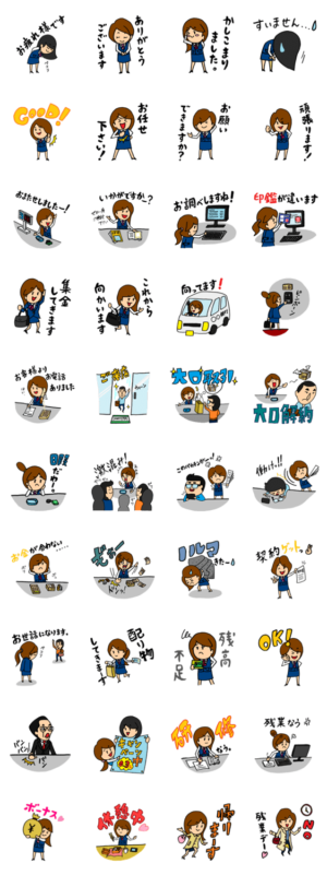 金融機関で働く銀行員のみなさんへ使いやすいスタンプを用意しました!お客様や職場の仲間へ向けて使ってみてください!堅い仕事だからこそスタンプで和やかになりますよ!bonchan cafe より発売