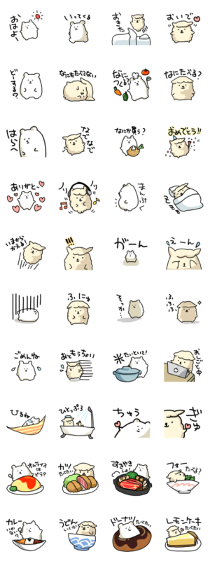 食べることばっかり考えているくまとひつじの日常スタンプです。kumi より発売