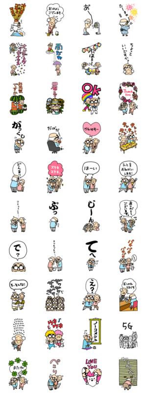 あの「ねりおは」の文太とピンチと間津健が大きなスタンプで登場。 ※このスタンプはトークルームで大きく表示されるBIGスタンプです。あつを より発売