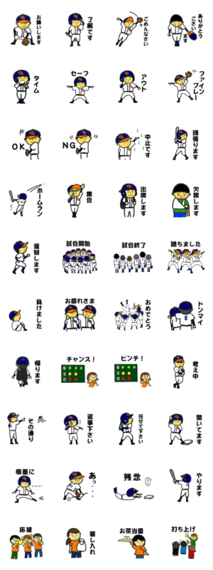 少年野球チームの使えるスタンプです。野球とメッセージを組み合わせてみました。監督やコーチや母や父も使いやすいと思います。