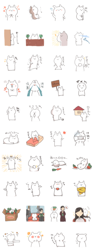 ウサギのウーさんスタンプが登場しました。大好物はニンジンです。毎日ニンジンを132本食べます。これでもまだ足りないくらいです。あ~もっと食べたい。絵師は裕崎さん。たうり より発売