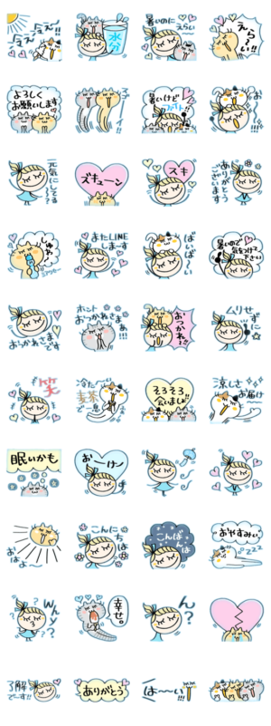 新感覚な冷感スタンプが出ました♪見てるだけで涼しい冷気を放っています^ ^送る相手に涼しさを届けちゃいましょう♪女の子/猫/ネコ