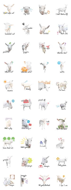 ヤギの挨拶スタンプ(英語版) スタンプ画像一覧