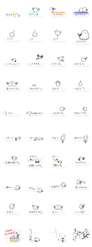 吹き出しで遊ぶシマエナガ達の可愛いスタンプです。卯月つくし より発売