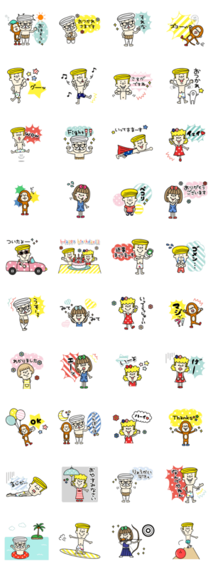 おとぼけジャックのファミリーが登場!お父さん、お母さん、妹、そしてジャックの4人家族です。ペットのサルもいます。友人や年上の人にも使える文字入りのスタンプです。