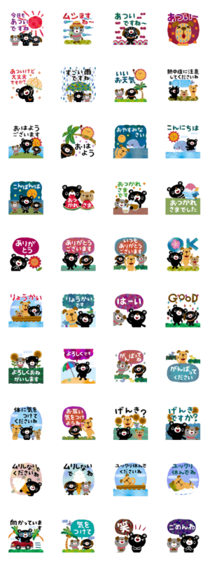 絵本みたいなどうぶついろいろ夏スタンプ スタンプ情報