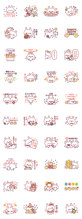 ウサピヨシリーズ第四弾!お誕生日や結婚、出産、入学、卒業、就職などの記念日に使えるお祝いの言葉を沢山詰め込んだスタンプです♪DECOR より発売