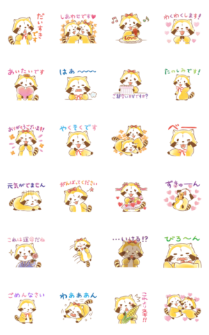 ラスカルとガールフレンド・リリィのカップル向けスタンプ。ふんわりやさしい水彩タッチでアニメーションします♪もちろん友だちや家族との会話に使ってもオッケーです。