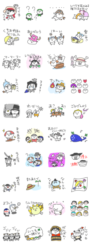 にしおかあきのワンピーススタンプ。ルフィもゾロもナミもサンジもウソップもたくさん。毎日つかえるデカ文字のOnePieceスタンプです。プレゼントにも。