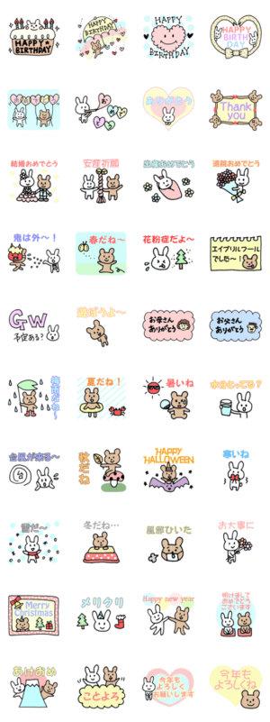 誕生日おめでとう、ありがとう、結婚、節分、エイプリルフール、母の日、父の日、ハロウィン、クリスマス、お正月のあけましておめでとうなど。春夏秋冬、便利に使えます。