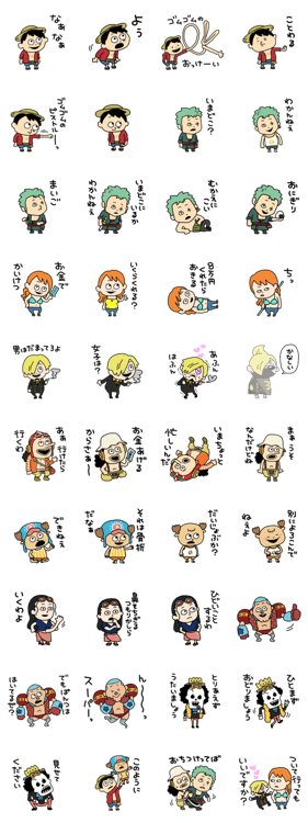 びっくりするほどユルいONEPIECEのスタンプ。話題性よし、ギャグセンスよし、汎用性も低くないと何かと使いやすい。あと「別によろこんでねえよ」のチョッパーがかわいい。
