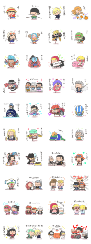ちみちみ小さいワンピースキャラクターのゆるゆるしたスタンプ。好きなキャラを詰め込みました。何となく適当に使えます。