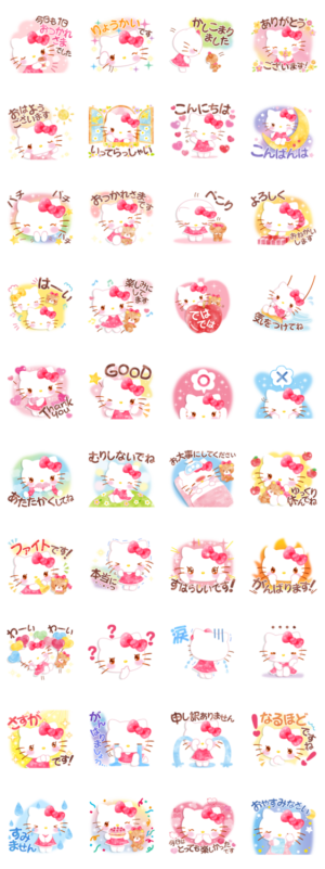 淡い水彩画タッチのハローキティの敬語スタンプです。お友達はもちろん目上の方にも送りやすいスタンプです。